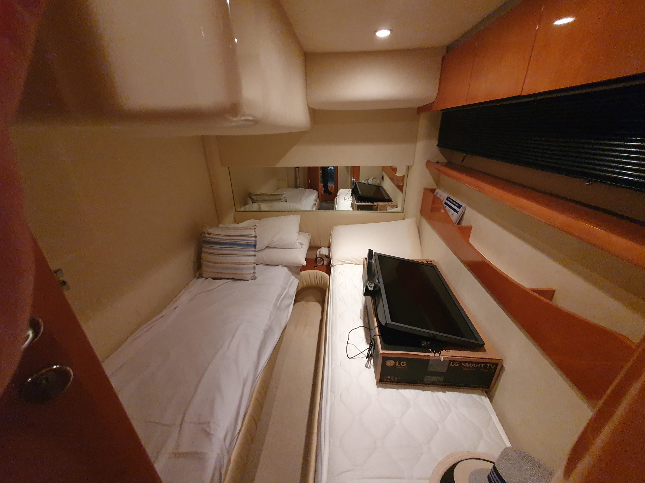 Descrizione interni : Armatoriale con letto matrimoniale più 2 cabine ospiti con letti singoli. Cucina completa con frigorifero – microonde – cucina in vetroceramica – ice maker – barbecue in pozzetto, dinette comode. Interni perfetti con materassi e coprimaterassi 2023.