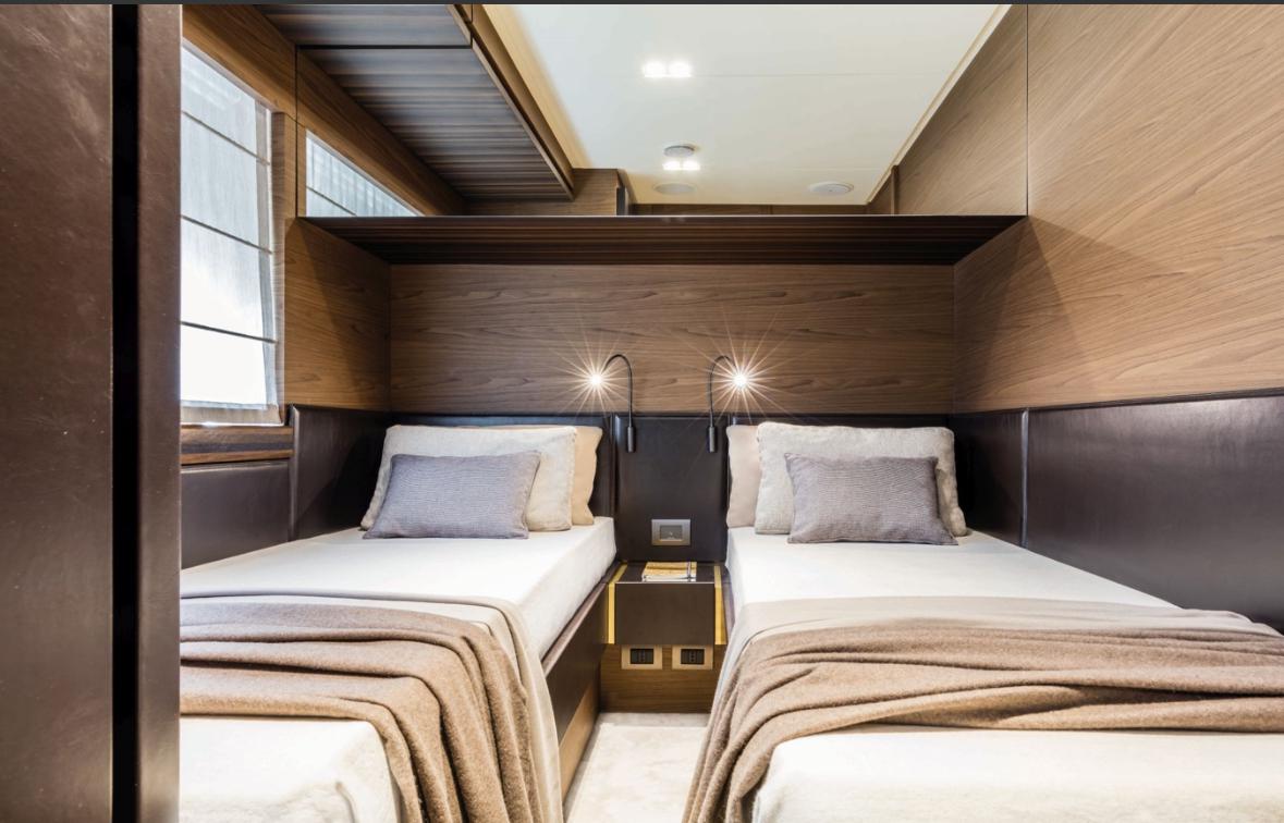 Luci scale discesa e luci scala esterna salita flybridge, Frigo-bottigliera a cassetto, Lavastoviglie 6 coperti, Tende a rullo oscuranti cabine, Lava/asciuga biancheria 42 cm 5 kg. Aria condizionata tropicale (salone + cabine + marinaio). Generatore ONAN 19 kW con filtro Racor e Separatore di fumi. In aggiunta abbiamo anche prese Tedesche Schuko su tutta la barca. Porta stagna da zona equipaggio a sala macchine, Passerella elettroidraulica a scomparsa con app Besenzoni oltre che ad un Dissalatore Idromar.